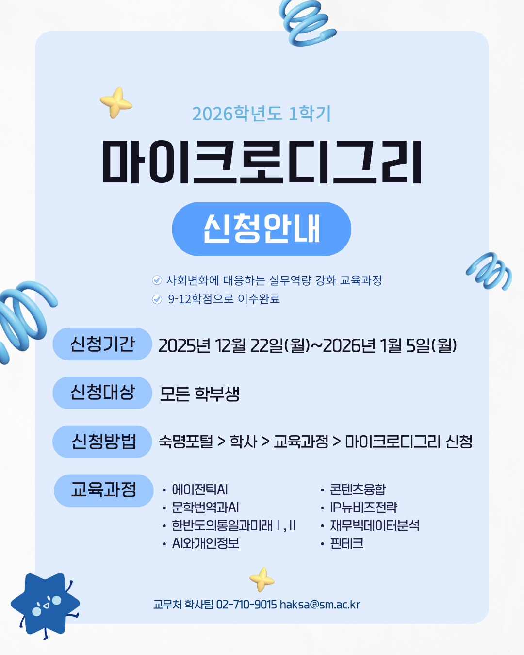 [학사팀] 2026학년도 1학기 마이크로디그리 신청 안내 N